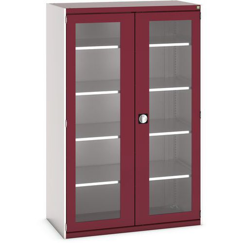 Műhelyszekrény átlátszó ajtókkal Bott Cubio, 200 x 130 x 65 cm, 4 polccal, szürke-piros Műhelyszekrény átlátszó ajtókkal Bott Cubio, 200 x 130 x 65 cm, 4 polccal, szürke-piros