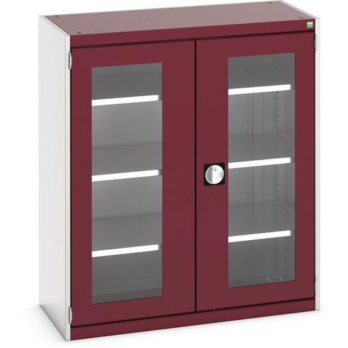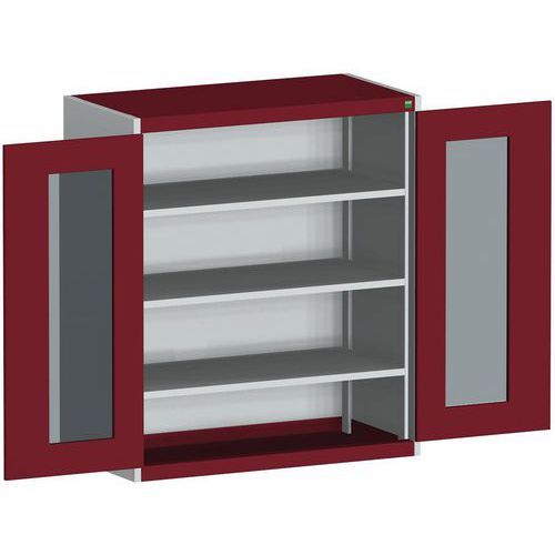 Műhelyszekrény átlátszó ajtókkal Bott Cubio, 120 x 105 x 52,5 cm, 3 polccal, szürke-piros Műhelyszekrény átlátszó ajtókkal Bott Cubio, 120 x 105 x 52,5 cm, 3 polccal, szürke-piros