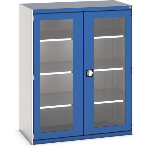 Műhelyszekrény átlátszó ajtókkal Bott Cubio, 160 x 130 x 65 cm, 3 polccal, szürke-kék Műhelyszekrény átlátszó ajtókkal Bott Cubio, 160 x 130 x 65 cm, 3 polccal, szürke-kék