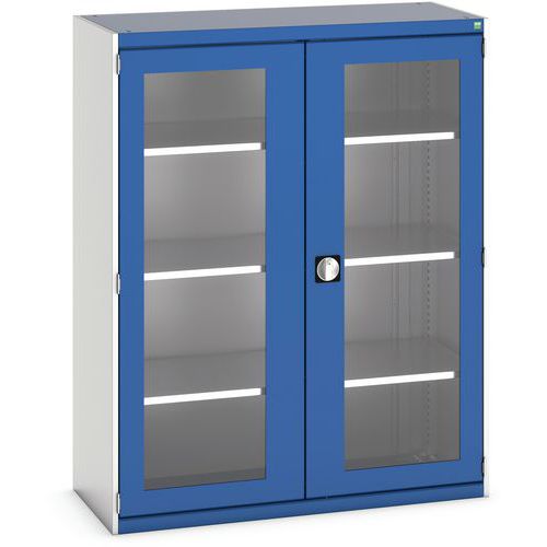 Műhelyszekrény átlátszó ajtókkal Bott Cubio, 160 x 130 x 52,5 cm, 3 polccal, szürke-kék Műhelyszekrény átlátszó ajtókkal Bott Cubio, 160 x 130 x 52,5 cm, 3 polccal, szürke-kék
