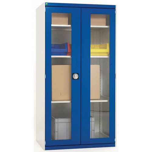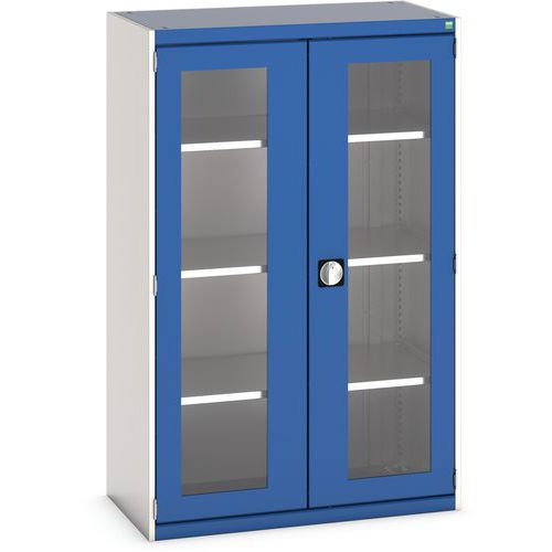 Műhelyszekrény átlátszó ajtókkal Bott Cubio, 160 x 105 x 52,5 cm, 3 polccal, szürke-kék Műhelyszekrény átlátszó ajtókkal Bott Cubio, 160 x 105 x 52,5 cm, 3 polccal, szürke-kék