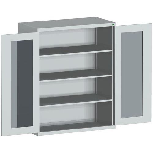Műhelyszekrény átlátszó ajtókkal Bott Cubio, 160 x 130 x 65 cm, 3 polccal, szürke-szürke Műhelyszekrény átlátszó ajtókkal Bott Cubio, 160 x 130 x 65 cm, 3 polccal, szürke-szürke