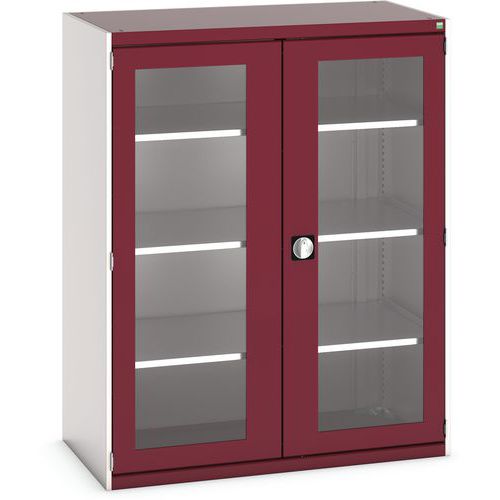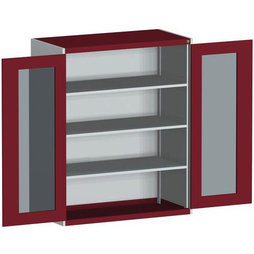 Műhelyszekrény átlátszó ajtókkal Bott Cubio, 160 x 130 x 65 cm, 3 polccal, szürke-piros Műhelyszekrény átlátszó ajtókkal Bott Cubio, 160 x 130 x 65 cm, 3 polccal, szürke-piros