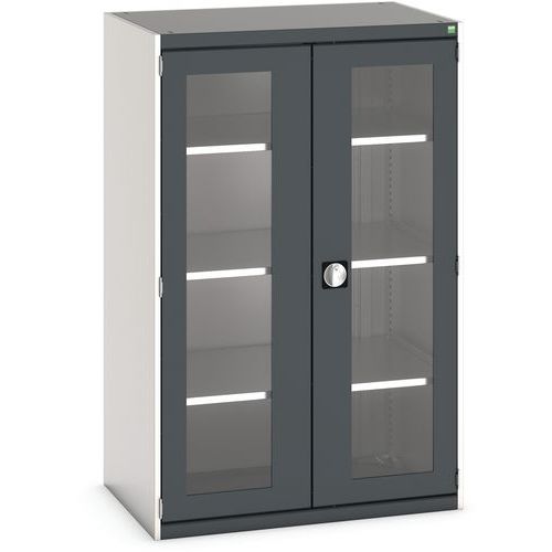 Műhelyszekrény átlátszó ajtókkal Bott Cubio, 160 x 105 x 65 cm, 3 polccal, szürke-antracit Műhelyszekrény átlátszó ajtókkal Bott Cubio, 160 x 105 x 65 cm, 3 polccal, szürke-antracit