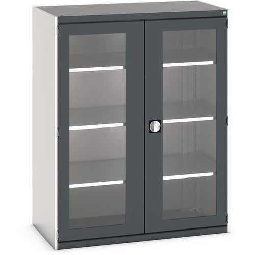 Műhelyszekrény átlátszó ajtókkal Bott Cubio, 160 x 130 x 65 cm, 3 polccal, szürke-antracit Műhelyszekrény átlátszó ajtókkal Bott Cubio, 160 x 130 x 65 cm, 3 polccal, szürke-antracit
