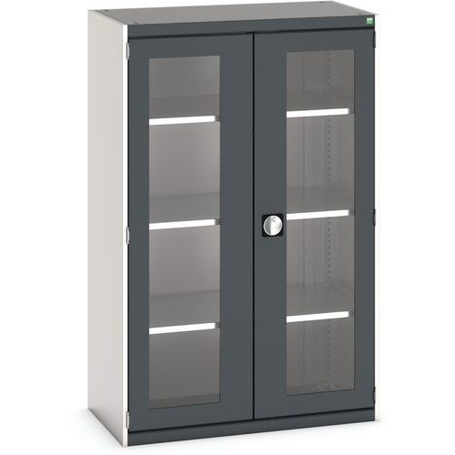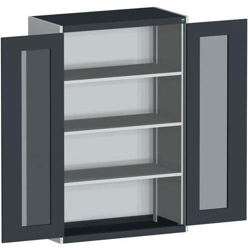 Műhelyszekrény átlátszó ajtókkal Bott Cubio, 160 x 105 x 52,5 cm, 3 polccal, szürke-antracit Műhelyszekrény átlátszó ajtókkal Bott Cubio, 160 x 105 x 52,5 cm, 3 polccal, szürke-antracit