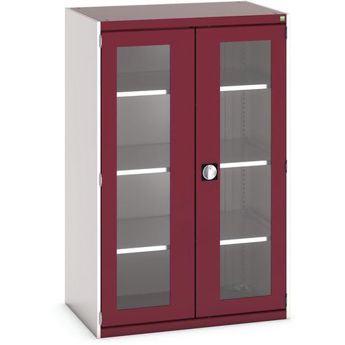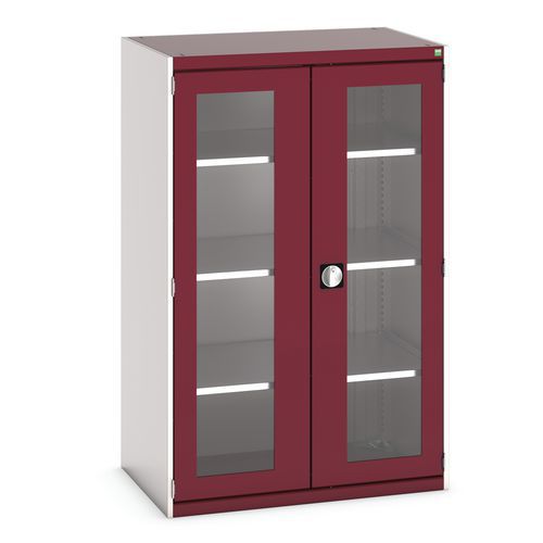 Műhelyszekrény átlátszó ajtókkal Bott Cubio, 160 x 105 x 65 cm, 3 polccal, szürke-piros Műhelyszekrény átlátszó ajtókkal Bott Cubio, 160 x 105 x 65 cm, 3 polccal, szürke-piros