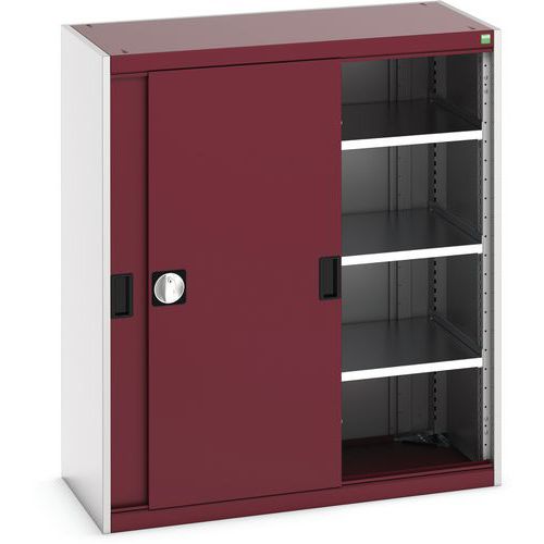 Műhelyszekrény tolóajtókkal, 120 x 105 x 52,5 cm, 3 polccal, szürke-piros Műhelyszekrény tolóajtókkal, 120 x 105 x 52,5 cm, 3 polccal, szürke-piros