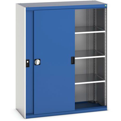 Műhelyszekrény tolóajtókkal, 160 x 130 x 52,5 cm, 3 polccal, szürke-kék Műhelyszekrény tolóajtókkal, 160 x 130 x 52,5 cm, 3 polccal, szürke-kék