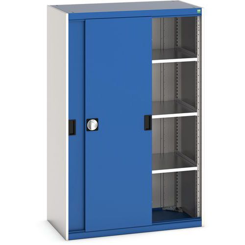 Műhelyszekrény tolóajtókkal, 160 x 105 x 52,5 cm, 3 polccal, szürke-kék Műhelyszekrény tolóajtókkal, 160 x 105 x 52,5 cm, 3 polccal, szürke-kék
