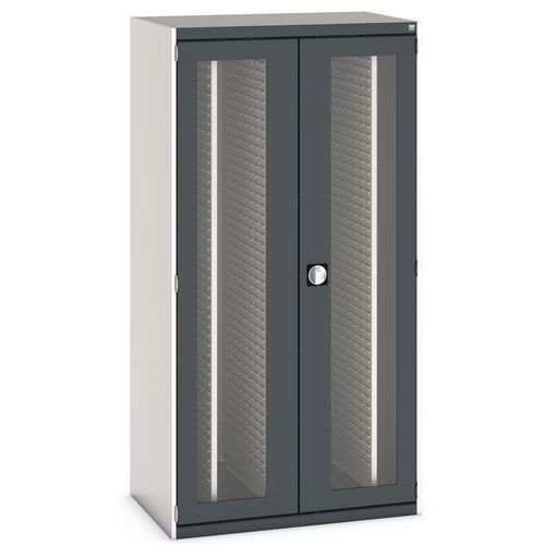 Bott Cubio műhelyszekrények visszahúzható perforált panelekkel, átlátszó ajtókkal