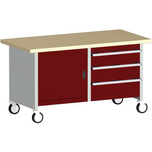 Bott Cubio Storage mobil műhelyasztal, 84 x 150 x 75 cm, 3 fiók, szekrény, multiplex, szürke-piros Bott Cubio Storage mobil műhelyasztal, 84 x 150 x 75 cm, 3 fiók, szekrény, multiplex, szürke-piros