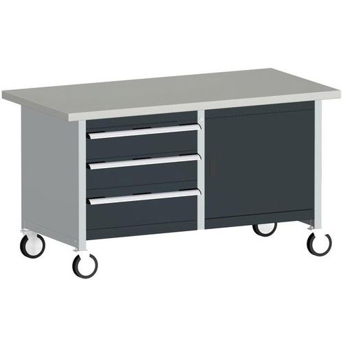 Mobil műhelyasztal Bott Cubio Tároló, 84 x 150 x 75 cm, 3 fiók, szekrény, linóleum, szürke-antracit Mobil műhelyasztal Bott Cubio Tároló, 84 x 150 x 75 cm, 3 fiók, szekrény, linóleum, szürke-antracit