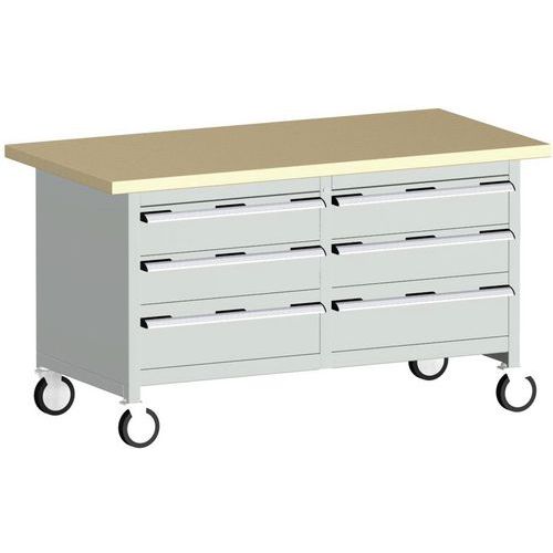 Bott Cubio Storage mobil műhelyasztal, 84 x 150 x 75 cm, 6 fiókos, multiplex/linóleum