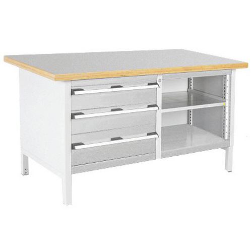 Bott Cubio Tároló műhelyasztal, 84 x 150 x 75 cm, 3 fiók, nyitott tér polccal, linóleum/rétegelt lemez