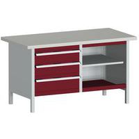 Műhelyasztal Bott Cubio Tároló, 84 x 150 x 75 cm, 3 fiók, nyitott tér polccal, linóleum, szürke-piros Műhelyasztal Bott Cubio Tároló, 84 x 150 x 75 cm, 3 fiók, nyitott tér polccal, linóleum, szürke-piros