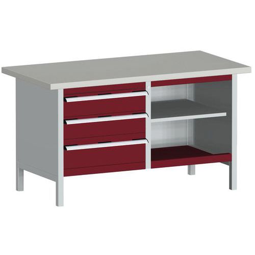 Bott Cubio Tároló műhelyasztal, 84 x 150 x 75 cm, 3 fiók, nyitott tér polccal, linóleum/rétegelt lemez