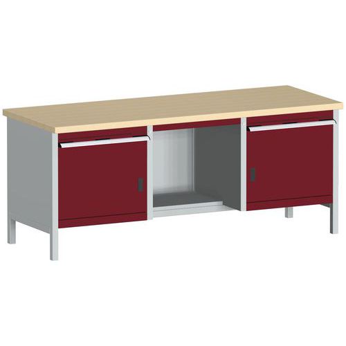 Műhelyasztal Bott Cubio Tároló, 84 x 200 x 75 cm, 2 szekrény, 2 fiók, polcok, multiplex, szürke-piros Műhelyasztal Bott Cubio Tároló, 84 x 200 x 75 cm, 2 szekrény, 2 fiók, polcok, multiplex, szürke-piros