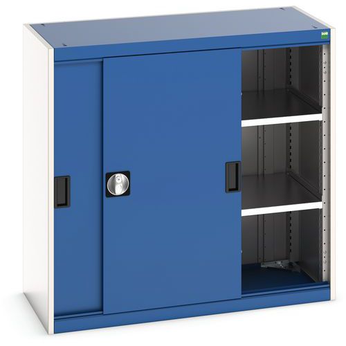 Műhelyszekrény tolóajtókkal, 100 x 105 x 52,5 cm, 2 polccal, szürke-kék Műhelyszekrény tolóajtókkal, 100 x 105 x 52,5 cm, 2 polccal, szürke-kék