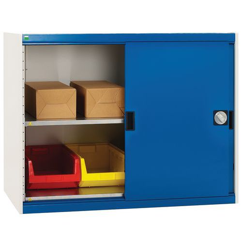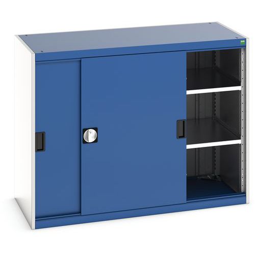 Műhelyszekrény tolóajtókkal, 100 x 130 x 65 cm, 2 polccal, szürke-kék Műhelyszekrény tolóajtókkal, 100 x 130 x 65 cm, 2 polccal, szürke-kék