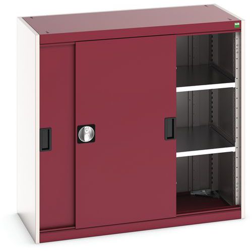 Műhelyszekrény tolóajtókkal, 100 x 105 x 52,5 cm, 2 polccal, szürke-piros Műhelyszekrény tolóajtókkal, 100 x 105 x 52,5 cm, 2 polccal, szürke-piros