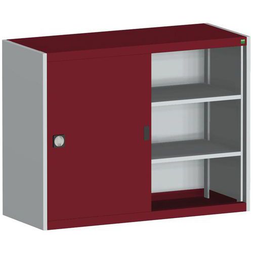 Műhelyszekrény tolóajtókkal, 100 x 130 x 52,5 cm, 2 polccal, szürke-piros Műhelyszekrény tolóajtókkal, 100 x 130 x 52,5 cm, 2 polccal, szürke-piros