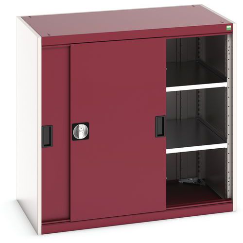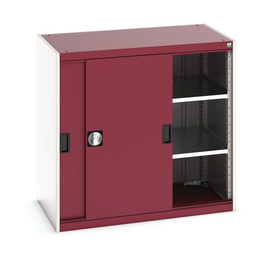 Műhelyszekrény tolóajtókkal, 100 x 105 x 65 cm, 2 polccal, szürke-piros Műhelyszekrény tolóajtókkal, 100 x 105 x 65 cm, 2 polccal, szürke-piros