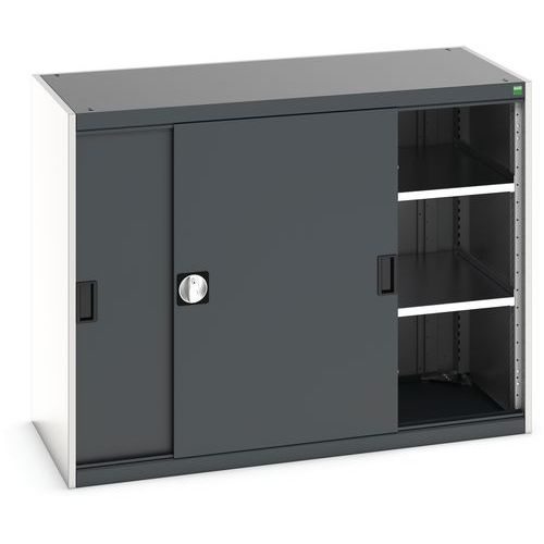 Műhelyszekrény tolóajtókkal, 100 x 130 x 65 cm, 2 polccal, szürke-antracit Műhelyszekrény tolóajtókkal, 100 x 130 x 65 cm, 2 polccal, szürke-antracit