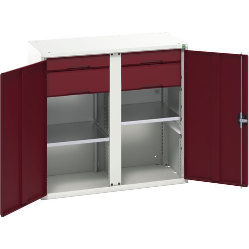Fém karbantartó szekrény Bott Verso, 100 x 105 x 55 cm, 2 polc, 4 fiók, szürke-piros Fém karbantartó szekrény Bott Verso, 100 x 105 x 55 cm, 2 polc, 4 fiók, szürke-piros