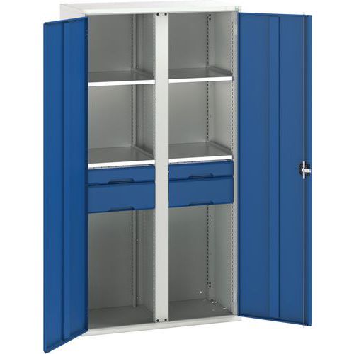 Fém karbantartó szekrény Bott Verso, 200 x 105 x 55 cm, 4 polc, 4 fiók, szürke-kék Fém karbantartó szekrény Bott Verso, 200 x 105 x 55 cm, 4 polc, 4 fiók, szürke-kék