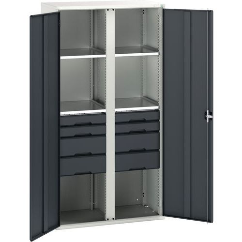 Fém karbantartó szekrény Bott Verso, 200 x 105 x 55 cm, 4 polc, 8 fiók, szürke-antracit Fém karbantartó szekrény Bott Verso, 200 x 105 x 55 cm, 4 polc, 8 fiók, szürke-antracit