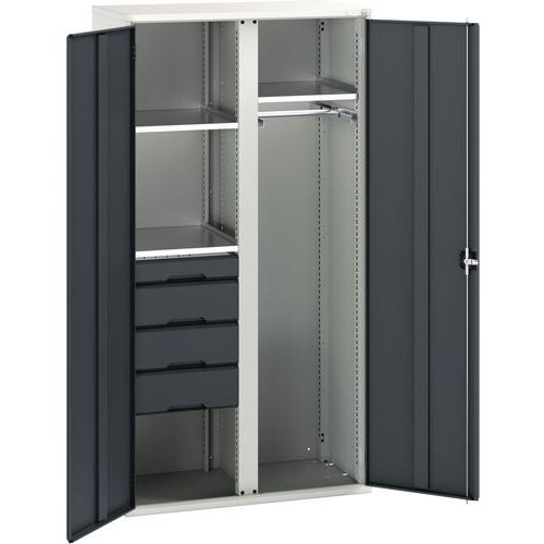 Fém tárolószekrény Bott Verso, 200 x 105 x 55 cm, 3 polc, 4 fiók, szürke-antracit Fém tárolószekrény Bott Verso, 200 x 105 x 55 cm, 3 polc, 4 fiók, szürke-antracit