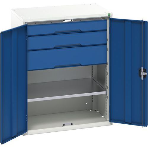Fiókos műhelyszekrény Bott Verso, 100 x 80 x 55 cm, 1 polc, 3 fiók, szürke-kék Fiókos műhelyszekrény Bott Verso, 100 x 80 x 55 cm, 1 polc, 3 fiók, szürke-kék