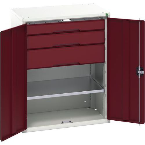 Fiókos műhelyszekrény Bott Verso, 100 x 80 x 55 cm, 1 polc, 3 fiók, szürke-piros Fiókos műhelyszekrény Bott Verso, 100 x 80 x 55 cm, 1 polc, 3 fiók, szürke-piros