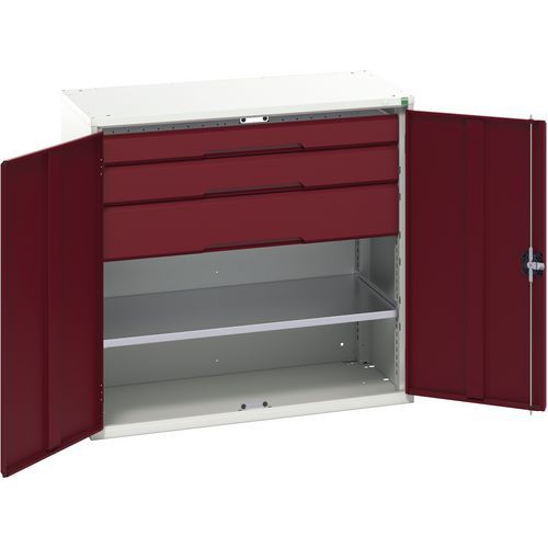 Fiókos műhelyszekrény Bott Verso, 100 x 105 x 55 cm, 1 polc, 3 fiók, szürke-piros Fiókos műhelyszekrény Bott Verso, 100 x 105 x 55 cm, 1 polc, 3 fiók, szürke-piros