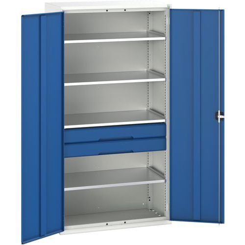 Fiókos műhelyszekrény Bott Verso, 200 x 105 x 55 cm, 4 polc, 2 fiók, szürke-kék Fiókos műhelyszekrény Bott Verso, 200 x 105 x 55 cm, 4 polc, 2 fiók, szürke-kék