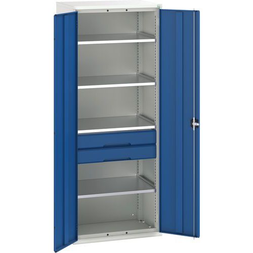 Fiókos műhelyszekrény Bott Verso, 200 x 80 x 55 cm, 4 polc, 2 fiók, szürke-kék Fiókos műhelyszekrény Bott Verso, 200 x 80 x 55 cm, 4 polc, 2 fiók, szürke-kék
