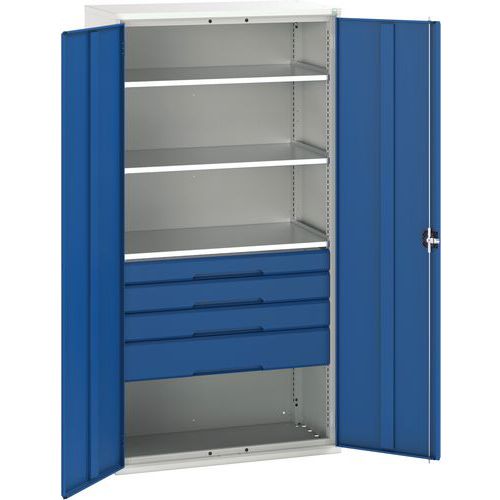 Fiókos műhelyszekrény Bott Verso, 200 x 105 x 55 cm, 3 polc, 4 fiók, szürke-kék Fiókos műhelyszekrény Bott Verso, 200 x 105 x 55 cm, 3 polc, 4 fiók, szürke-kék