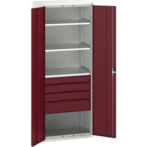 Fiókos műhelyszekrény Bott Verso, 200 x 80 x 55 cm, 3 polc, 4 fiók, szürke-piros Fiókos műhelyszekrény Bott Verso, 200 x 80 x 55 cm, 3 polc, 4 fiók, szürke-piros