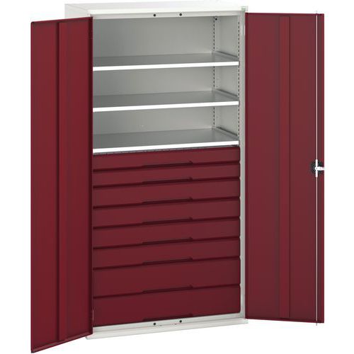 Fiókos műhelyszekrény Bott Verso, 200 x 105 x 55 cm, 3 polc, 8 fiók, szürke-piros Fiókos műhelyszekrény Bott Verso, 200 x 105 x 55 cm, 3 polc, 8 fiók, szürke-piros