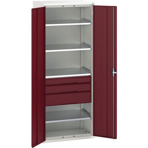 Fiókos műhelyszekrény Bott Verso, 200 x 80 x 55 cm, 4 polc, 3 fiók, szürke-piros Fiókos műhelyszekrény Bott Verso, 200 x 80 x 55 cm, 4 polc, 3 fiók, szürke-piros