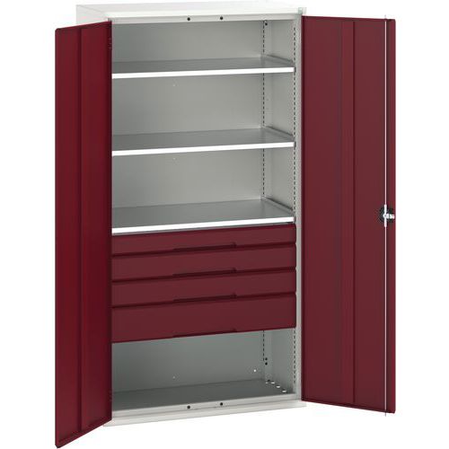 Fiókos műhelyszekrény Bott Verso, 200 x 105 x 55 cm, 3 polc, 4 fiók, szürke-piros Fiókos műhelyszekrény Bott Verso, 200 x 105 x 55 cm, 3 polc, 4 fiók, szürke-piros