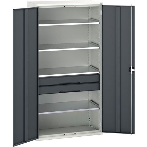 Műhelyszekrény fiókokkal Bott Verso, 200 x 105 x 55 cm, 4 polc, 2 fiók, szürke-antracit Műhelyszekrény fiókokkal Bott Verso, 200 x 105 x 55 cm, 4 polc, 2 fiók, szürke-antracit
