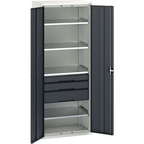 Műhelyszekrény fiókokkal Bott Verso, 200 x 80 x 55 cm, 4 polc, 3 fiók, szürke-antracit Műhelyszekrény fiókokkal Bott Verso, 200 x 80 x 55 cm, 4 polc, 3 fiók, szürke-antracit