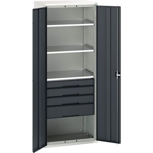 Műhelyszekrény fiókokkal Bott Verso, 200 x 80 x 55 cm, 3 polc, 4 fiók, szürke-antracit Műhelyszekrény fiókokkal Bott Verso, 200 x 80 x 55 cm, 3 polc, 4 fiók, szürke-antracit