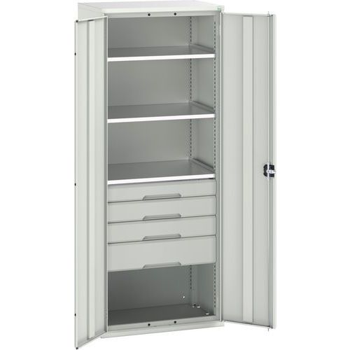 Fiókos műhelyszekrény Bott Verso, 200 x 80 x 55 cm, 3 polc, 4 fiók, szürke-szürke Fiókos műhelyszekrény Bott Verso, 200 x 80 x 55 cm, 3 polc, 4 fiók, szürke-szürke