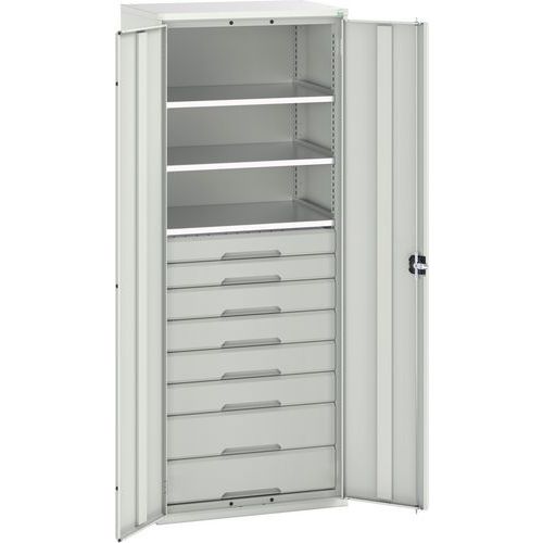 Fiókos műhelyszekrény Bott Verso, 200 x 80 x 55 cm, 3 polc, 8 fiók, szürke-szürke Fiókos műhelyszekrény Bott Verso, 200 x 80 x 55 cm, 3 polc, 8 fiók, szürke-szürke