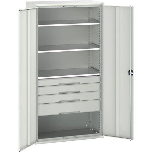 Fiókos műhelyszekrény Bott Verso, 200 x 105 x 55 cm, 3 polc, 4 fiók, szürke-szürke Fiókos műhelyszekrény Bott Verso, 200 x 105 x 55 cm, 3 polc, 4 fiók, szürke-szürke
