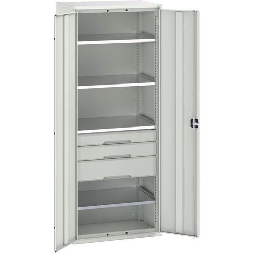Fiókos műhelyszekrény Bott Verso, 200 x 80 x 55 cm, 4 polc, 3 fiók, szürke-szürke Fiókos műhelyszekrény Bott Verso, 200 x 80 x 55 cm, 4 polc, 3 fiók, szürke-szürke