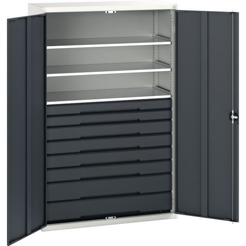 Műhelyszekrény fiókos Bott Verso, 200 x 130 x 55 cm, 3 polc, 8 fiók, szürke-antracit Műhelyszekrény fiókos Bott Verso, 200 x 130 x 55 cm, 3 polc, 8 fiók, szürke-antracit